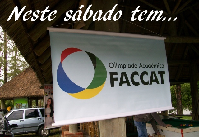 Olimpíada Acadêmica da Faccat é Neste Sábado!!! por Prof. Dr. Carlos Fernando Jung - segunda-feira, 14 out. 2013, 11:29 Número de respostas: 0 . Link direto