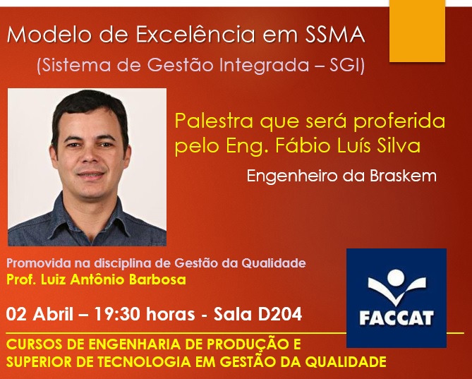 Disciplina de Gestão da Qualidade Promove Palestra! por Prof. Dr. Jung - domingo, 30 mar. 2014, 13:18 Número de respostas: 0 Link direto