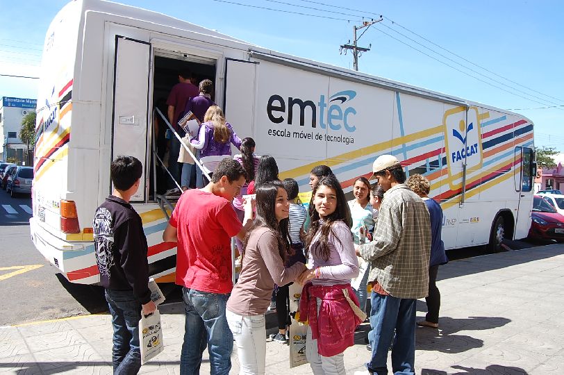 A Faccat marcou presença divulgando suas opções de cursos de graduação. Um dos destaques da feira foi a Escola Móvel de Tecnologia (EMTEC), da Faccat. Montada em um ônibus adaptado (foto), no interior da escola estavam expostos protótipos demonstrativos das diferentes áreas da engenharia. A novidade, que atraiu estudantes e também outros visitantes da feira, incluiu visitas orientadas, conduzidas pelo Eng. Flávio Lucas da Rosa