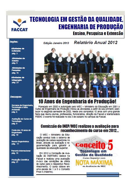 Já Está Disponível o Relatório Anual 2012 do Curso